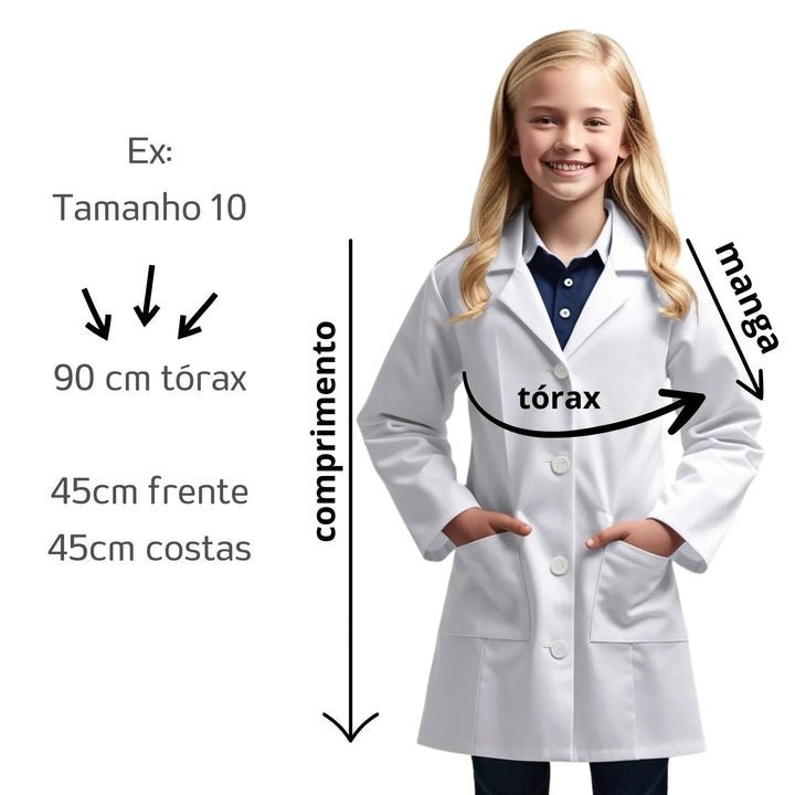 Jaleco Branco Infantil Manga Longa (Laboratório/Escola)
